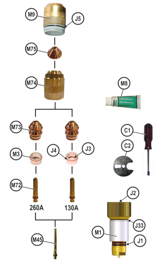 CPM 400 130-260A STRAIGHT CUT BEVEL SS & AL ASSEMBLY